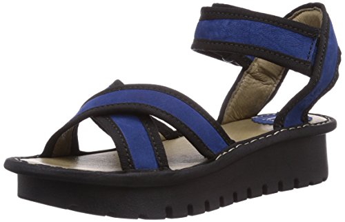 Best Seller! Fly London Kut, Women's Wedge Heel Sandals, Black/Blue, 42 EU Review