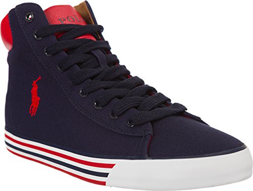 Best Seller! Polo Ralph Lauren Harvey Mid-NE Newport Navy/Red Canvas Hi-Top Trainer Boots 9(43) Review
